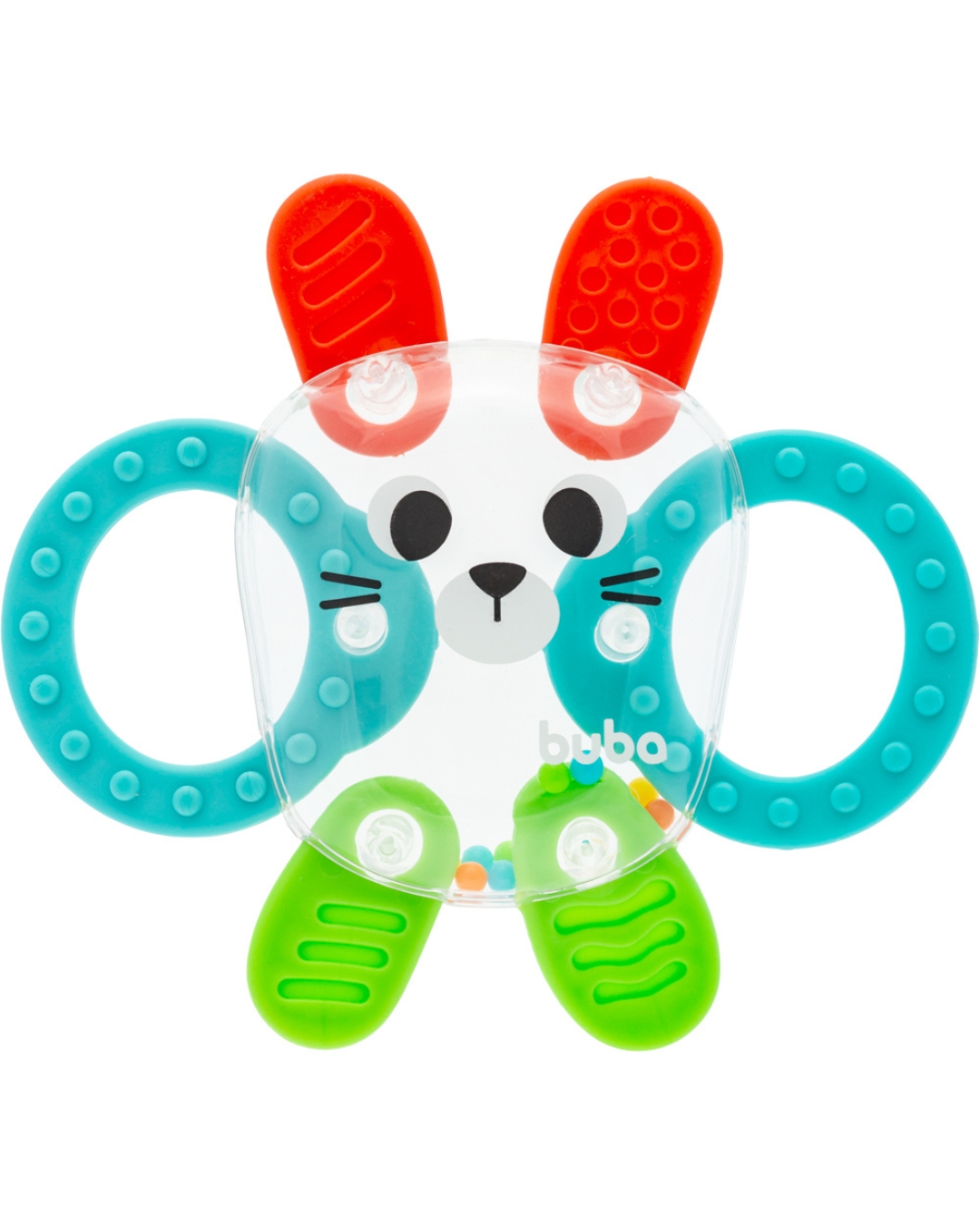 O chocalho com mordedor da Buba é perfeito para entreter e aliviar o desconforto da dentição do bebê.